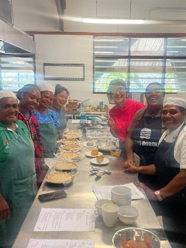 In the second session, Ms. Hondo conducted a hands-on workshop with professional chefs from hotels and cafés in Vanuatu, creating vegan tarts, matcha cream using Japanese green tea, and traditional Japanese custard pudding.