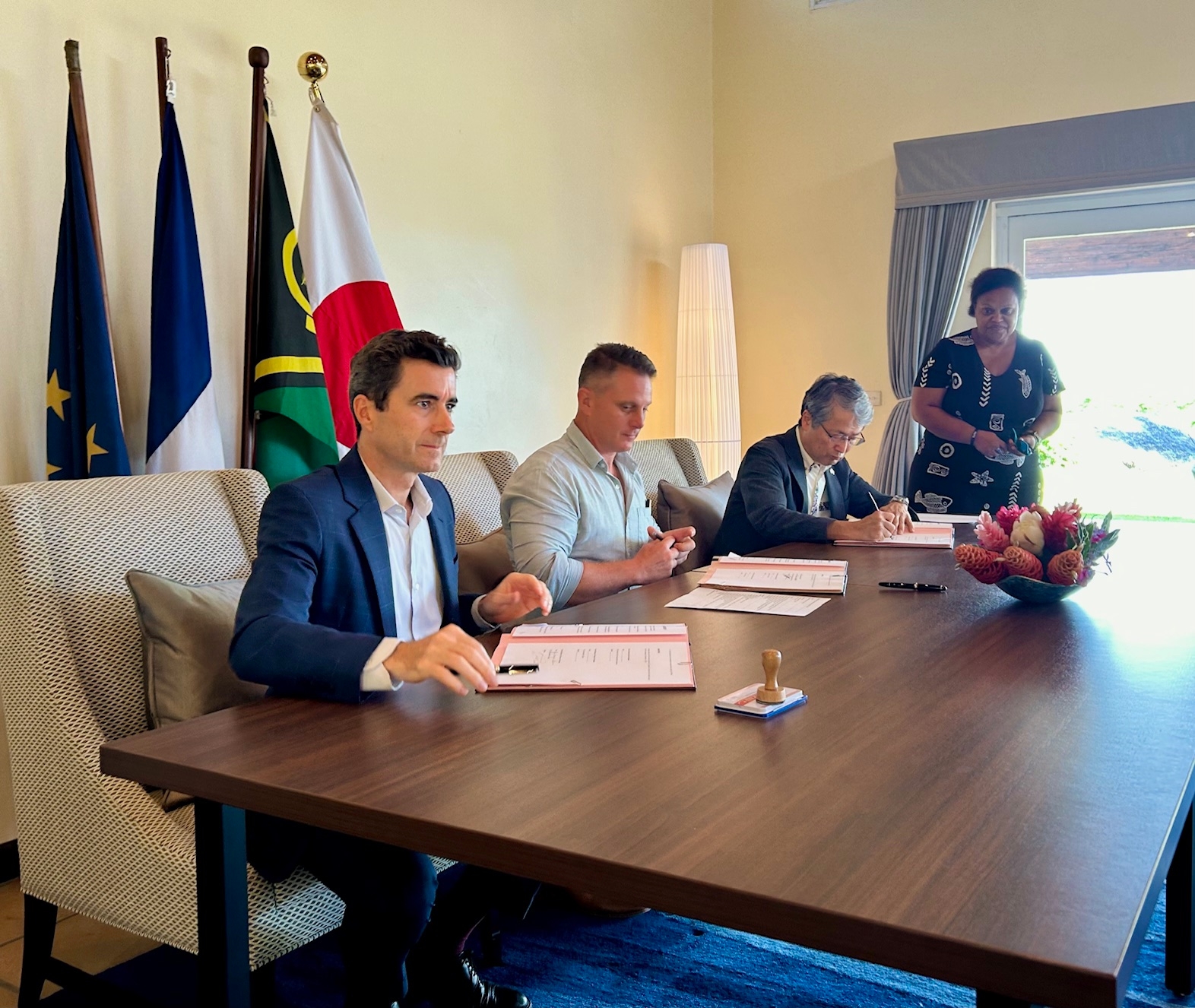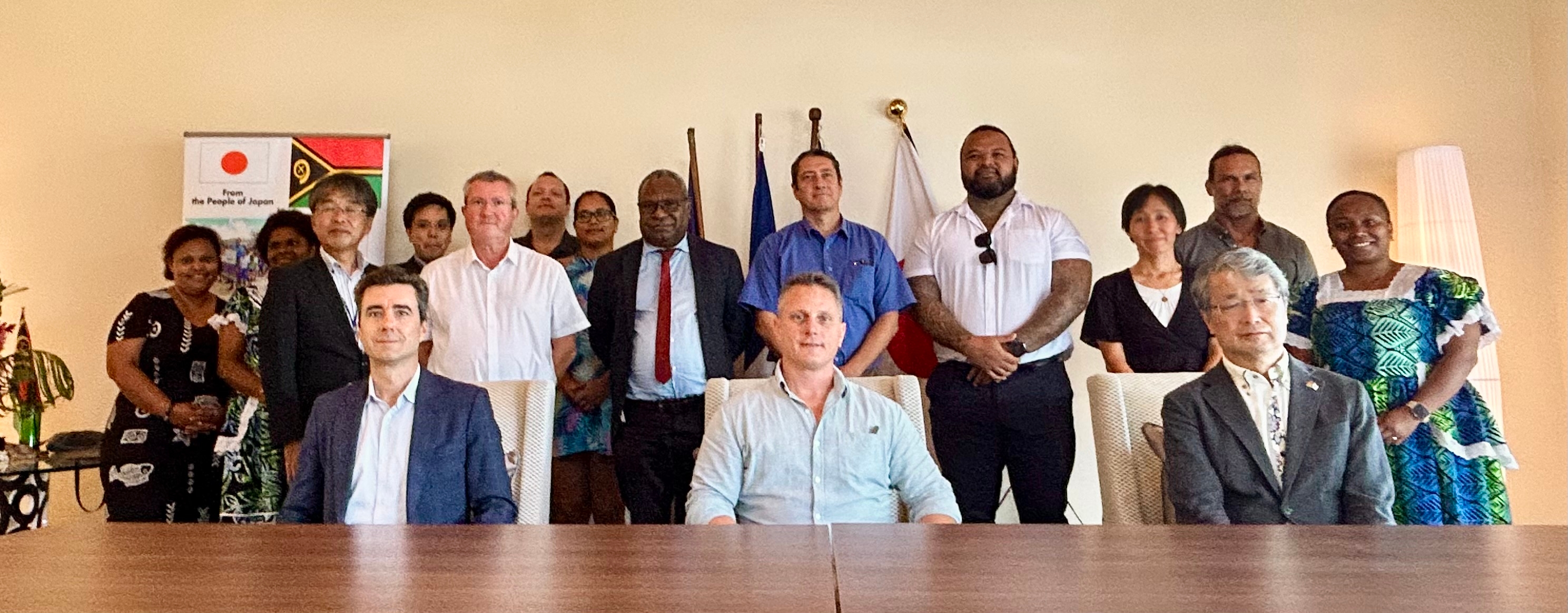 On 13 November, Ambassador OKUDA Naohisa of Japan, President Mr. Nicolas Monvoisin of Federesen blong Judo blong Vanuatu and Ambassador Jean-Baptiste Jeangène Vilmer of France, together with Mr. Iati Bergman, Director General of the Ministry of Justice, Youth & Community Services representing the Government of Vanuatu, attended the signing ceremony for the construction of a new Judo-Jo (Judo Hall) in Port Vila.