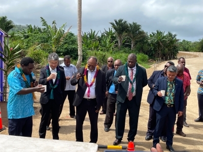4月19日、奥田大使はバヌアツ共和国のシャルロット・サルワイ首相をはじめとする要人の出席のもと、テオウマ橋災害復興プロジェクトの起工式に出席しました。