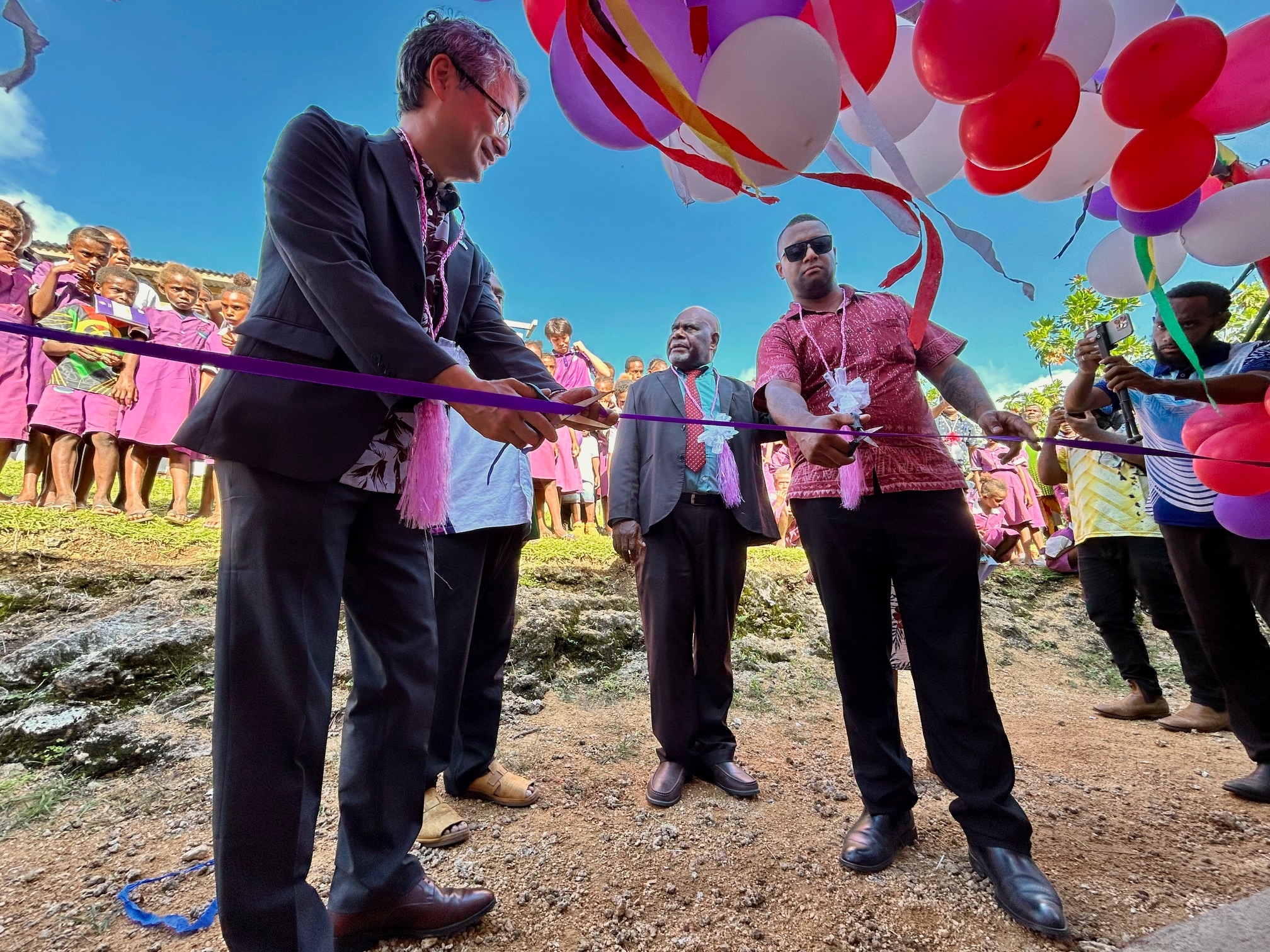 2026年4月9日、奥田直久駐バヌアツ日本国大使は、草の根・人間の安全保障無償資金協力により建設されたエラタップ小学校新校舎の引渡式に出席しました。引渡式には、シミル・ジョンソン教育・訓練大臣をはじめ、同省関係者、学校関係者及び地域住民が出席しました。